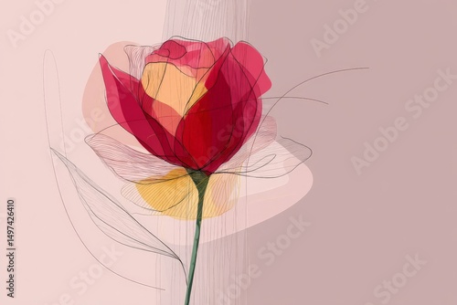 Colorful line art of a rose with pastel background showcasing intricate details and softness during a creative design session