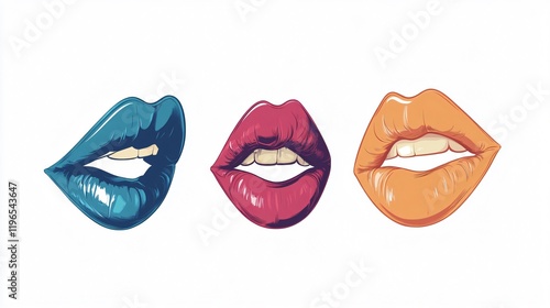 Colorful Lips Trio: A Captivating Illustration of Glossy, Sensual Lips in Blue, Red, and Orange