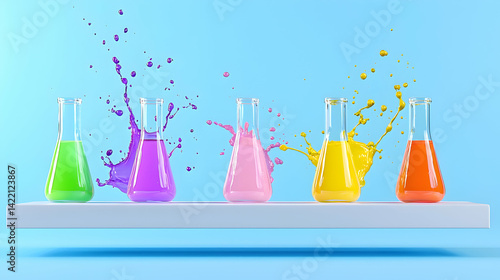 Colorful Liquids Splashing From Flasks on Blue Background