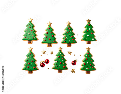 Colorful lit Christmas tree with holiday decorations and wrapped gifts ready for celebration isolated on white background