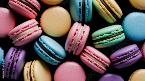 Colorful macaroons, a sweet French dessert assortment on a wooden table