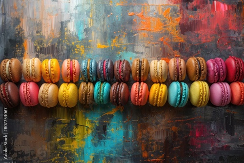 Colorful Macaroons Against Artistic Backdrop, French Macarons Dessert, Creative Food Still Life