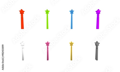 Colorful Magic wand icon isolated on white background. Star shape magic accessory. Magical power. Minimalism concept. 3D render illustration