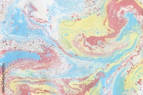 Colorful marble ink paper texture on white background. Chaotic abstract organic design. Bath bomb waves.