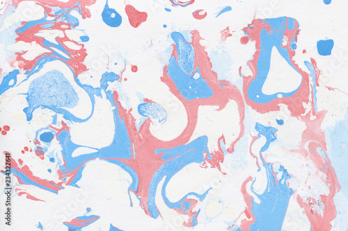 Colorful marble ink paper texture on white background. Chaotic abstract organic design. Bath bomb waves.