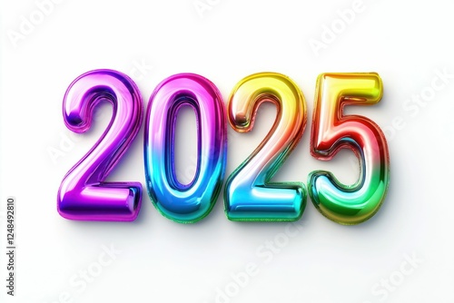 Colorful Metallic 2025 Numbers Isolated on White