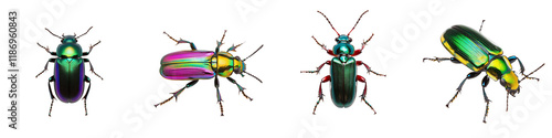 Colorful Metallic Beetles in Detailed Illustration on a Black Background