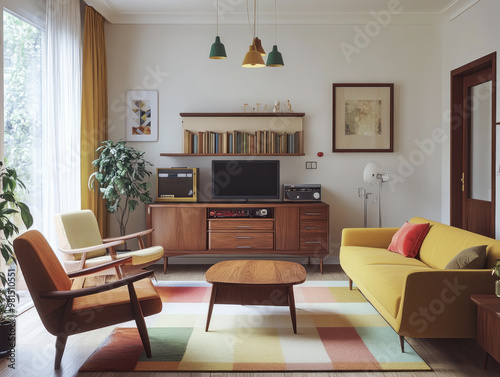 Colorful Mid-Century Modern Living Room with Bold Accents