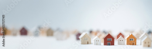 Colorful miniature houses arranged in a row isolated on white background. Urban city background banner. Copy space