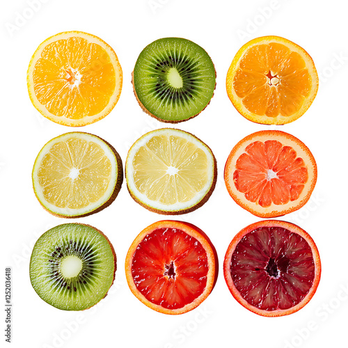 Colorful Mixed Fruit Slices Isolated on Transparent Background