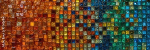 Colorful mosaic made of glass tiles is forming an abstract background texture