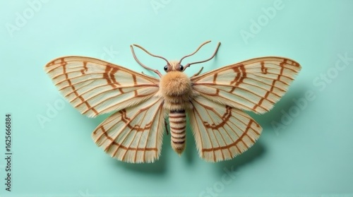 Colorful Moth with Striped Wings and Antennae on Bright Blue Background