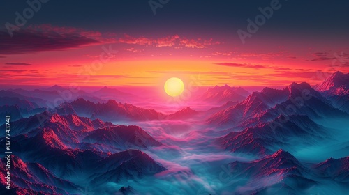 Colorful mountain ranges create a striking and vibrant landscape with a variety of hues blending across rugged peaks perfect for dramatic backgrounds Background Illustration, Bright color tones, ,