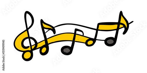 Colorful musical notes dancing on a line symbolizing joy and creativity in music