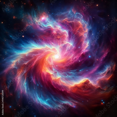 Colorful Nebula Cloud Set in a Majestic Galaxy