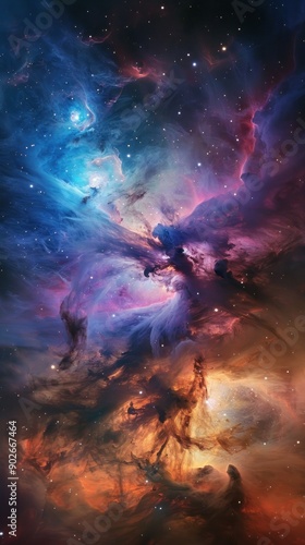 Colorful nebula in deep space with swirling gas clouds