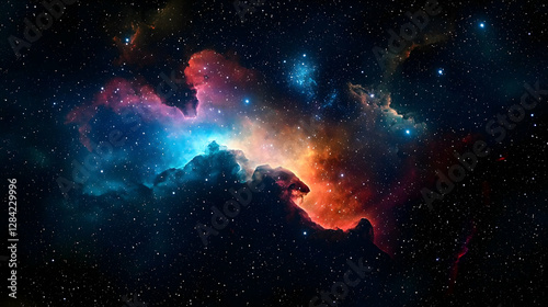 Colorful Nebula With Stars Displaying Cosmic Dust In The Deep Space