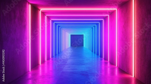 Colorful Neon Lights in a Futuristic Tunnel Interior Space