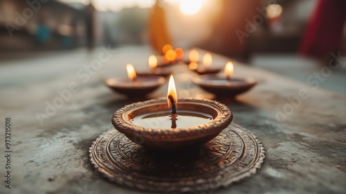 Colorful oil lamps lit in a row for a vibrant spring celebration design