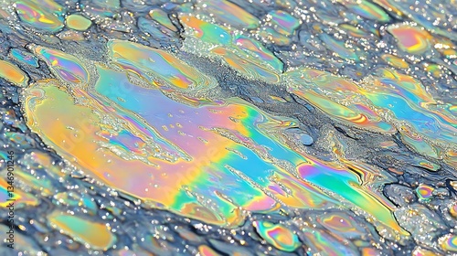 Colorful Oil Slick on a Grey Surface.