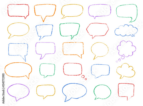 Colorful Outline Hand-Drawn Crayon Speech and Thought Bubble Vector Illustration
