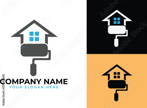 colorful paint house logo design vector, House Paint Logo Design Concept Vector, Home House Painting Service
