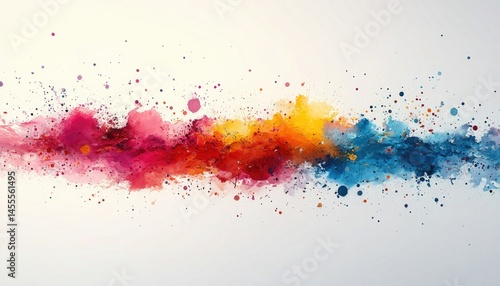 Colorful paint splashes across a clean, white background, vibrant and bold. Use as backdrop for artistic projects needing a splash of vibrant color.