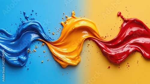 Colorful paint splashes flowing, vibrant background, abstract art, graphic design, stock photo, visual design