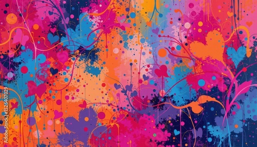 Colorful paint splats on black background, an abstract art explosion of vibrant colors and textures