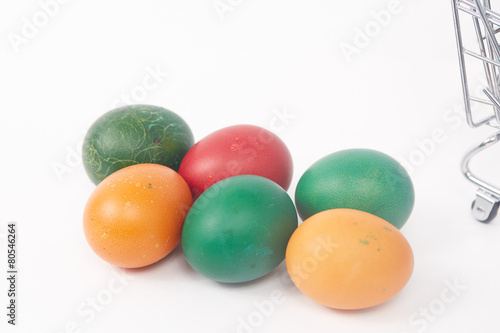 colorful painted Easter eggs on a white background