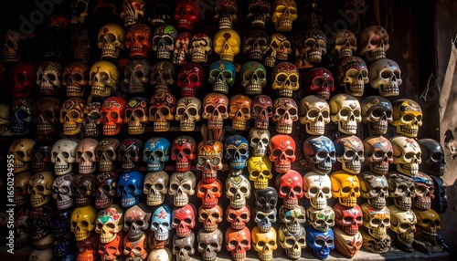 Colorful painted skulls displayed