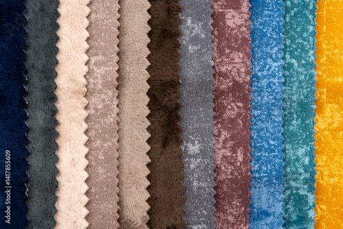 Colorful palette of colors from pieces of fabric. Palette of fabric. Textile. Material
