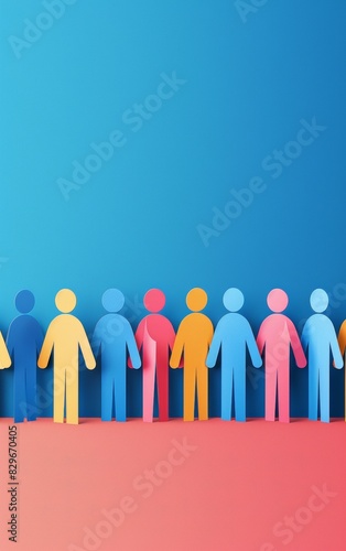 Colorful paper cutout figures standing in a row on a colorful background, symbolizing diversity, unity, and teamwork. pride month concept