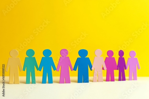 Colorful Paper Cutouts of People Forming Line Conveying Unity, on Concept Diversity, Inclusion and Equality