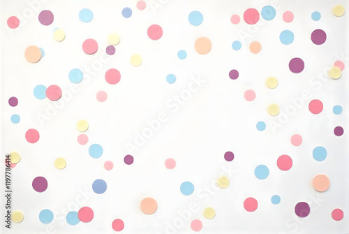 Colorful paper dots on a white background for Easter party decoration, playful design, copy space