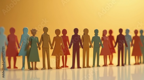 Colorful Paper Figures Holding Hands in Unity Against a Warm Background