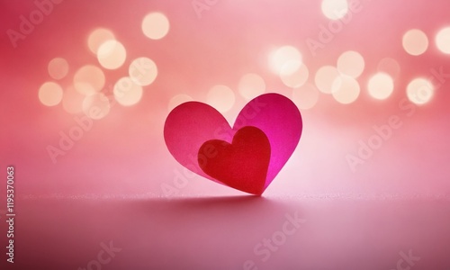 Colorful paper hearts create a romantic atmosphere with soft glowing lights in the background during a celebration. Valentine’s Day, date, engagement, love, wedding, background