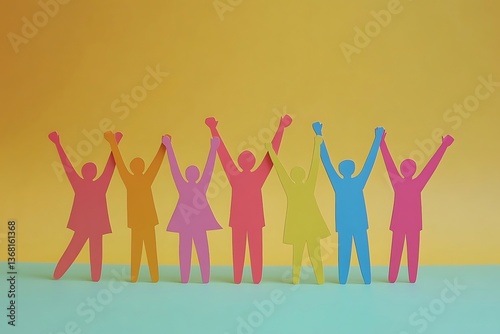 Colorful Paper People Celebrating Teamwork Unity7