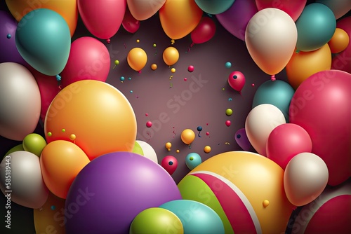 Colorful Party balloons, white background, birthday, balloon, party, celebration, frame, balloons, decoration, card, holiday, happy, illustration, design, colorful, fun, greeting, generative ai