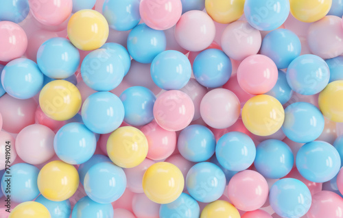 Colorful pastel blue, pink and yellow candy balls on a background