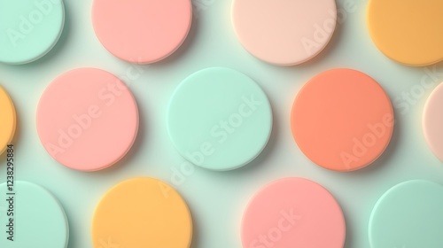 Colorful Pastel Circular Discs Randomly Arranged on Soft Green Background for Creative Design Applications