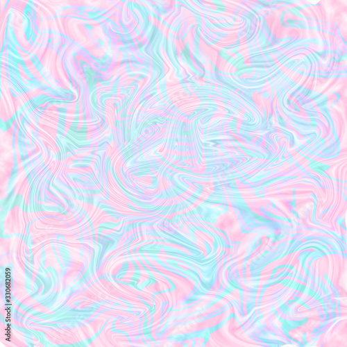 Colorful pastel digital generated illustration - swirl background with liquify effect. Chaotic swirly waves in neon rainbow colors. Modern holographic pattern - graphic digital art backdrop