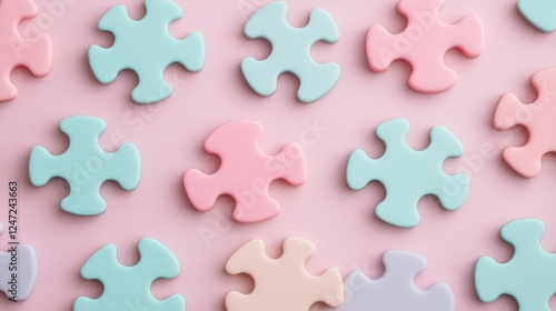 Colorful Pastel Puzzle Pieces on a Soft Pink Background Symbolizing ESG Concepts