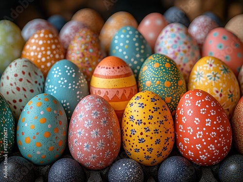 Colorful Pattern of Easter Eggs Featuring Intricate Designs