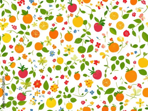 Colorful pattern of fruits and flowers created for a vibrant decorative use