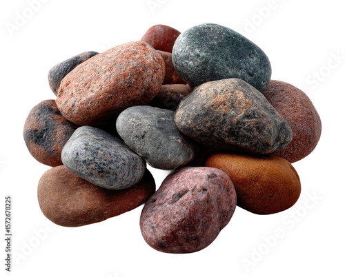 Colorful pebbles arrangement nature top-down view. Isolated on transparent background, png.