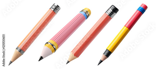 Colorful Pencils Isolated on Transparent Background for Design Projects