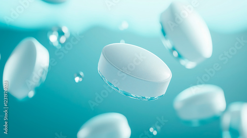Colorful pills and capsules on empty background. Minimal medical concept. Flat lay, top view.