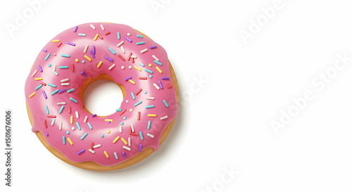 Colorful Pink Iced Donut with Sprinkles on a White Background