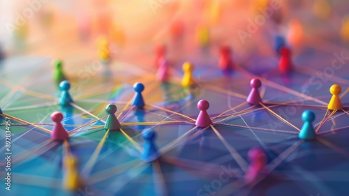Colorful pins on map connected by lines, symbolizing networking or connections